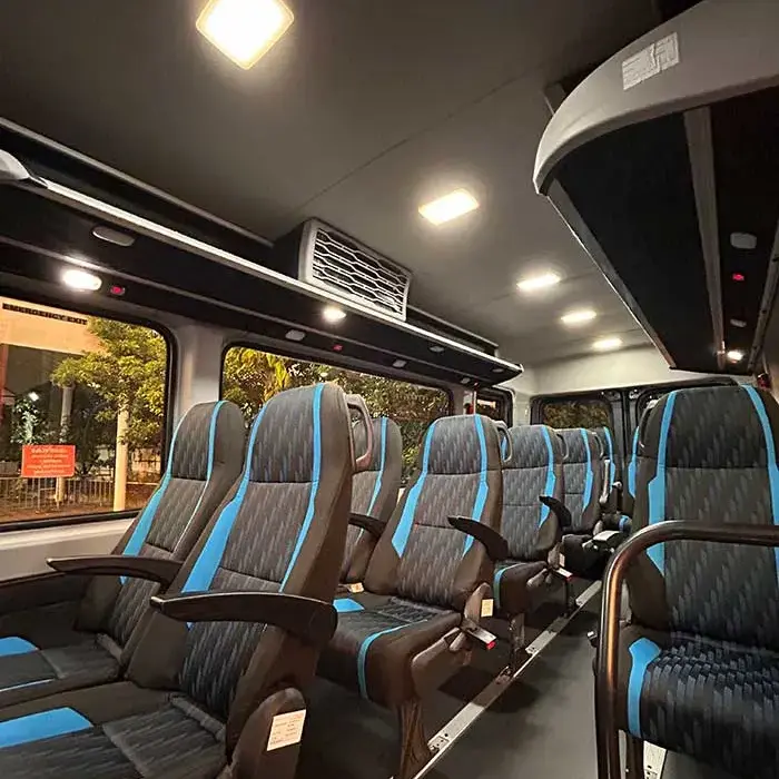 Travel in a modern, spacious Premium Urbania designed for smooth Kerala tours. The cabin offers wide pushback seats, excellent AC cooling, large windows, and superior ride comfort—ideal for family trips, pilgrimages, and multi-day tour packages.